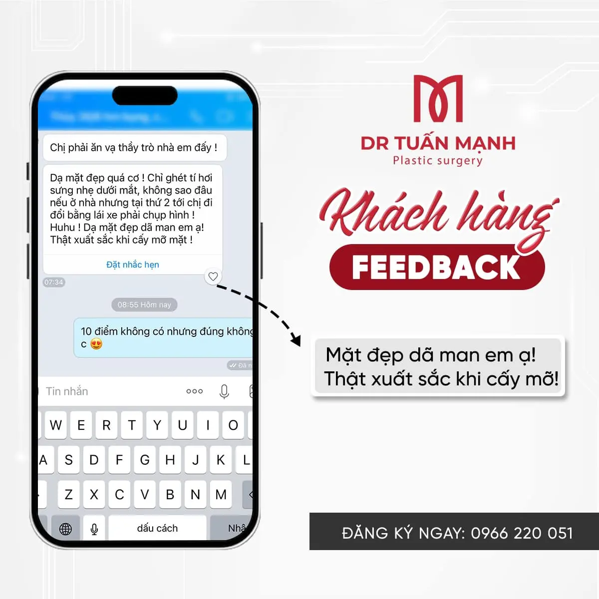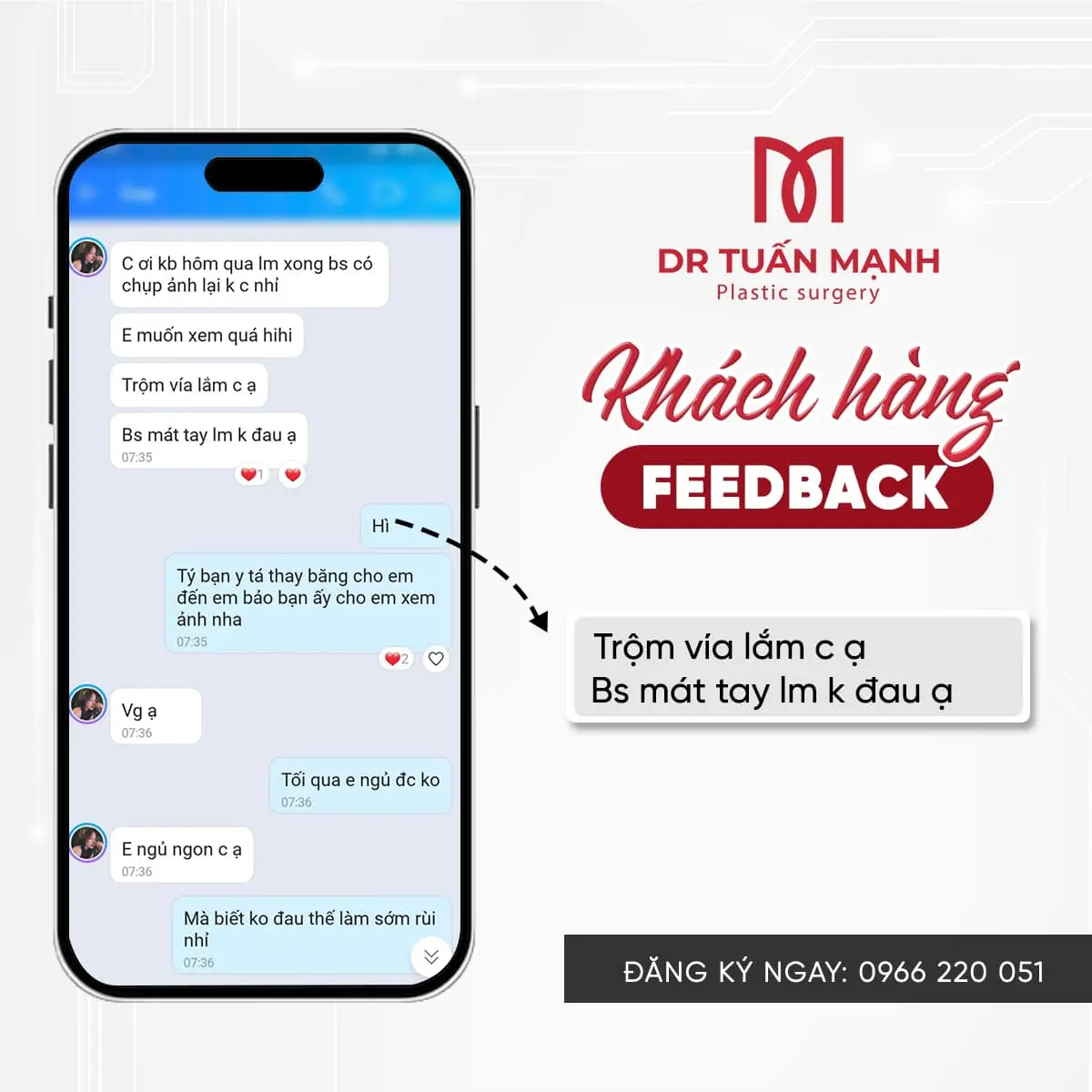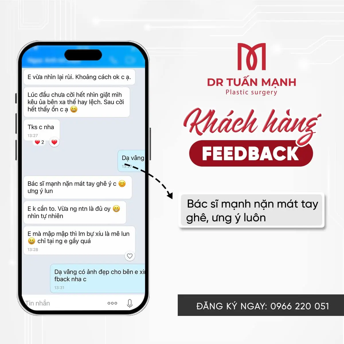 Khách hàng hài lòng sau khi thực hiện dịch vụ luôn là niềm động lực lớn cho ekip Bác sĩ Tuấn Mạnh.